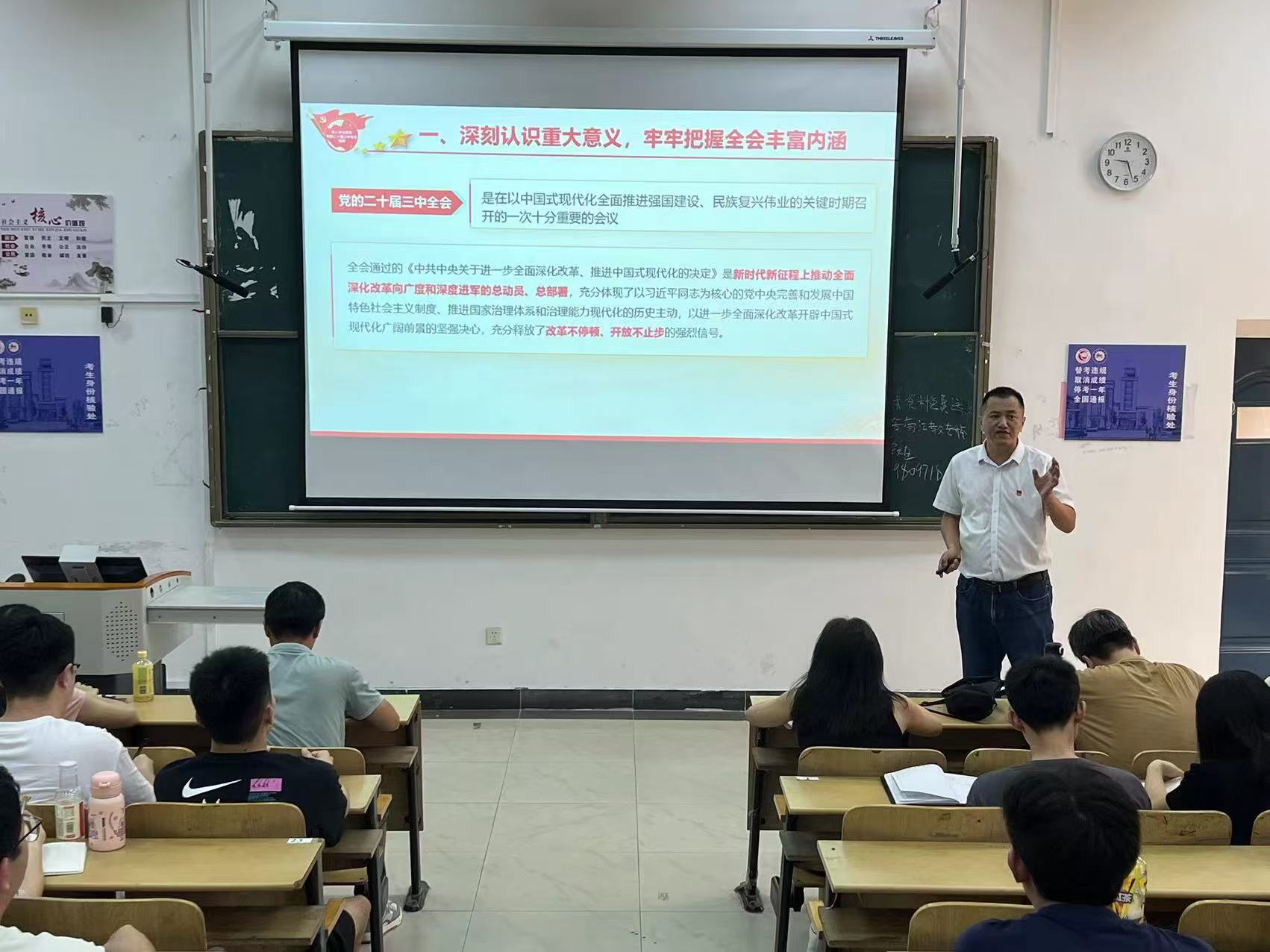 2024年9月12日下午,智能技术学院党委书记张世麒以“凝心聚力谋发展,守正创新化改革”为主题,为学院全体党员教师和部分学生讲述了一堂生动而深刻的党的二十届三中全会精神专题党课。