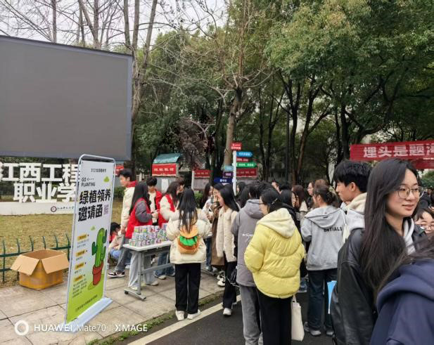 本次活动不仅让同学们体验了种植的乐趣,更将环保理念深植于心。一位刚领养完绿植的同学愉快地表示:“我觉得这个活动特别有意义,既能把绿色带回家,又能学到很多养护知识。不仅收获了一盆‘春天的绿朋友’,还认识了不少志同道合的朋友。”盆栽虽小,却能孕育无限生机,小小植物文创杯,培植出大大的绿色情怀。