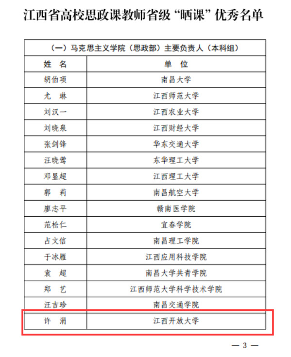 近日,2022年度全省高校思政课专职教师全员“晒课”优秀名单出炉,我院思政课教师许涓和李玫榜上有名。其中,许涓老师入选马克思主义学院(思政部)主要负责人(本科组)优秀名单,李玫老师入选思政课教师代表(高职组)优秀名单。两位老师分别与44所本科院校马克思主义(思政部)主要负责人、59所高职院校思政课教师同台竞技并脱颖而出,反映了两位教师高超的教学水平,也是近年来AC米兰中文官方网站着力推进思政课问题式专题化团队教学改革一个重要成果。