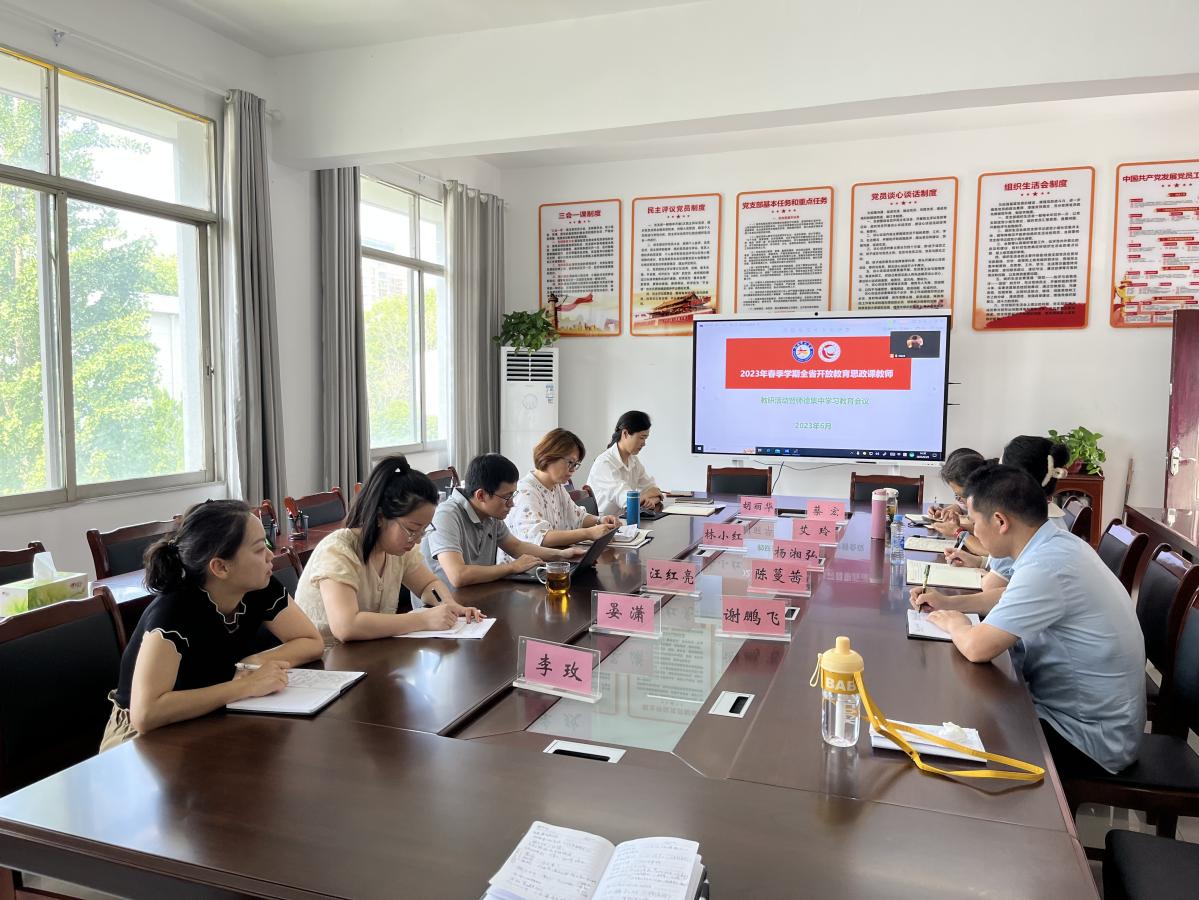 为提升全省开大系统思政课教学质量和效果,落实上级有关师德师风建设有关精神,6月29日下午,马克思主义学院通过线上、线下相结合的方式,召开了全省开大系统春季学期思政课教研暨师德集中学习会。马克思主义学院院长汪红亮,副院长林小红出席会议,省校及各地市开大的思政课教师参加会议。