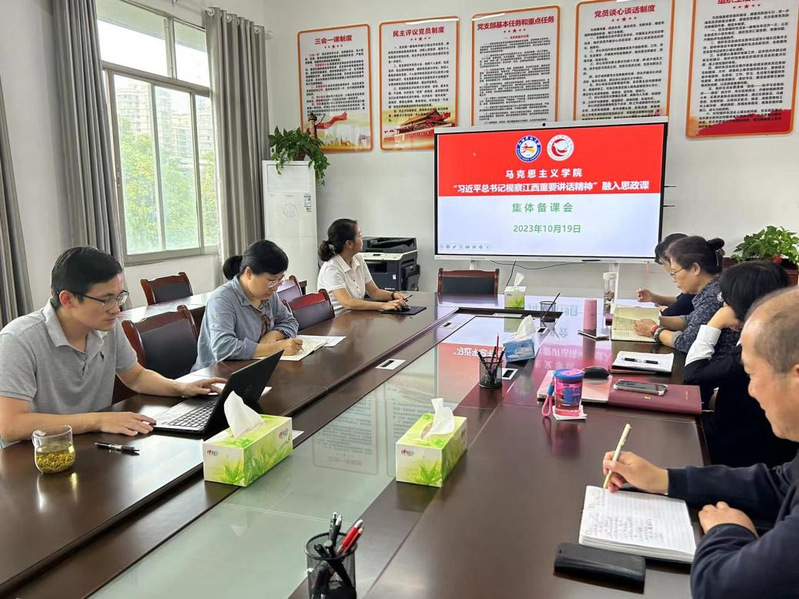 为推进习近平总书记视察江西重要讲话精神进教材、进课堂、进头脑,10月19日下午,我院举行习近平总书记视察江西重要讲话精神“三进”集体备课会。汪红亮院长主持备课会,全体思政课教师参加。
