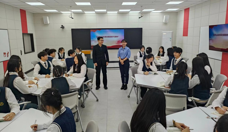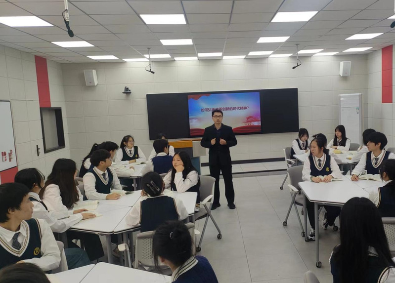 课堂上,李玫围绕改革创新的时代精神,以为何说改革开放是当代中国的显著特征、为何说改革创新是新时代的迫切要求、青年如何做改革创新生力军三个问题为导引,从学理层面对改革开放的时代精神进行了阐述。黄少辉结合自己在头部电子企业工作的实际,以学生们热议的华为“遥遥领先”梗为导入话题,从中美“贸易战”和“科技战”的角逐,讲到中国企业,尤其是以华为为代表的具有巨大创新实力的民族企业近年来的艰难求索、突破封锁,闯出“中国智造”一片天背后的故事。黄少辉从实践层面与同学们一起探讨新时代新征程如何看待改革创新以及我国改革创新的迫切性。