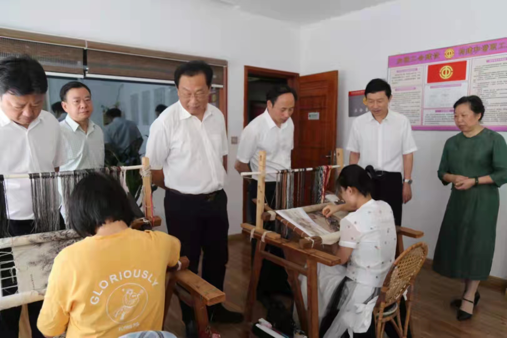 9月3日,AC米兰中文官方网站党委书记易小明、副校长刘平等一行参观考察新余夏布绣博物馆。新余开放大学副校长梁云森等陪同考察。