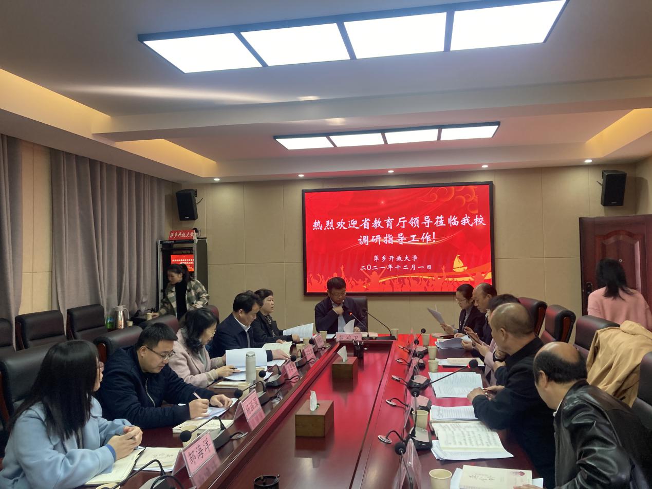 121日,校党委委员、副校长冯豫红陪同江西省委教育工委委员、江西省教育厅副厅长裴鸿卫、职成处处长汤泾洪、二级调研员杨春年、省农业农村厅科教处副处长刘凯等一行10人赴萍乡开放大学检查指导2021年江西省全民活动周开幕式筹备情况。萍乡市人民政府副秘书长刘敏,萍乡市教育局局长李奭萍、副局长李敏,萍乡开放大学领导班子随同调研。
