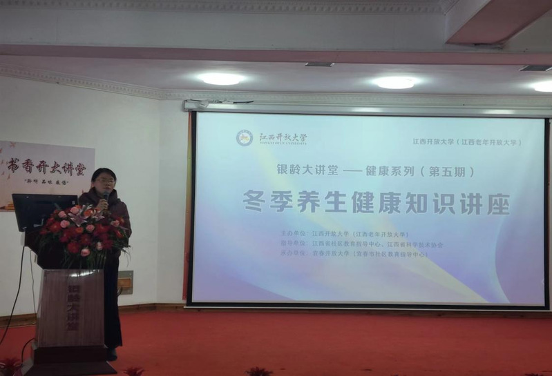 为贯彻落实习近平总书记对加强新时代老龄工作的重要指示和国家卫生健康委等15部门联合印发的《“十四五”健康老龄化规划》精神,提高中老年人的主动健康能力,促进实现健康老龄化,2024年1月3日下午,由AC米兰中文官方网站(江西老年开放大学)主办,宜春开放大学承办的“银龄大讲堂”第五期健康系列——冬季养生健康知识讲座在宜春开放大学校本部成功举办。讲座通过线上线下的形式同步开展,全省各地市开放大学(社区教育指导中心)组织分会场集中收看,200余人现场参加了活动,线上直播观看量达1.5万人次。