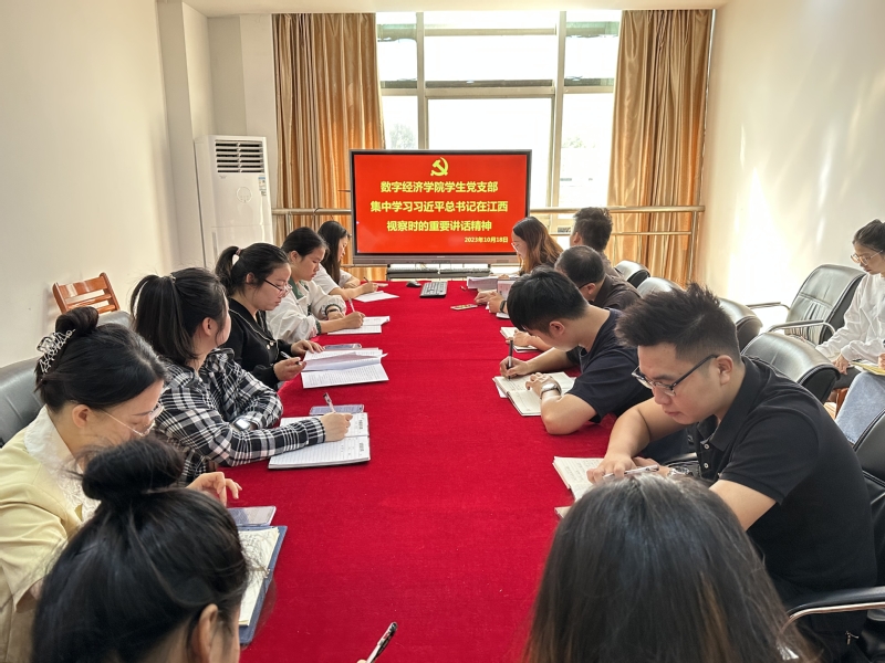 为学习传达习近平总书记在江西考察时的重要讲话精神,充分认识习近平总书记考察江西的重大意义,全面理解总书记对江西发展的战略定位,准确把握总书记对江西工作的重要要求,数字经济学院多措并举,通过线上即时学习和线下集中学习的方式,在全院迅速掀起学习热潮,学院党委、各支部、各部门召开专题学习会议,各班级开展主题班会,并结合工作实际,畅谈学习体会,学习氛围浓厚。