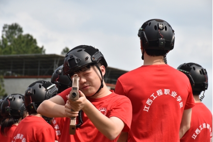“真人CS体验”活动环节,大家来到了真人CS区,开启红色尖兵之旅。在野外,躲藏、瞄准、射击……模拟战时烽火时的状态,点燃了大家的青春激情。