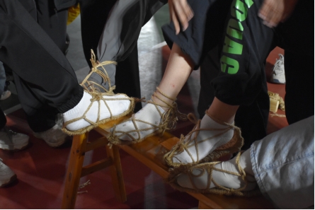 “学编红军草鞋”活动环节,教官带领大家学习编红军草鞋,切实感受到红军的艰苦条件,从而传承优秀的红色基因。大家分组实践,从编织鞋底入手,一下一上穿梭缠绕,在教官的指导下,大家很快便编织完成。