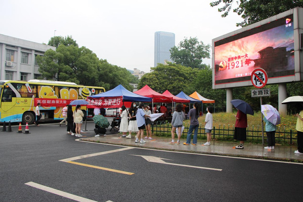 活动现场,前来献血的师生在江西省血液中心工作人员和学校志愿者的指导下,严格落实一米线、全程戴口罩、检查健康码等环节,有序开展填表、测量血压、系统录入、血型检验、采血等献血流程,最大程度保障参加献血师生的自身安全。活动中,不论是献血者还是志愿者,他们都用自己的实际行动,传递着温暖与感动。献血者中,既有多次无偿献血的“老将”,也有初次上阵的“新兵”,他们勇敢地伸出臂膀、捋起衣袖,献出了自己的涓涓热血。一袋袋带着体温的血液,凝聚着所有人的赤诚爱心;一张张特殊意义的献血登记表,彰显着当代青年的责任担当。志愿者们提醒大家遵守现场秩序,密切地关注每位献血同学的身体状况,用一声声叮咛、一句句嘱咐,缓解大家的紧张情绪,守护着参与活动师生的生命健康。他们用热血汇聚力量,用行动诠释担当。