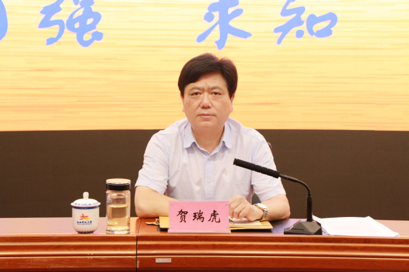 6月16日上午,AC米兰中文官方网站召开打造模范机关(部门)工作推进会,校党委书记贺瑞虎出席并讲话,校党委副书记邓文君就如何推进工作做了布置。在家校领导、处级干部及青山湖校区科级干部共100余人参加会议。校党委副书记、校长黄平槐主持会议。