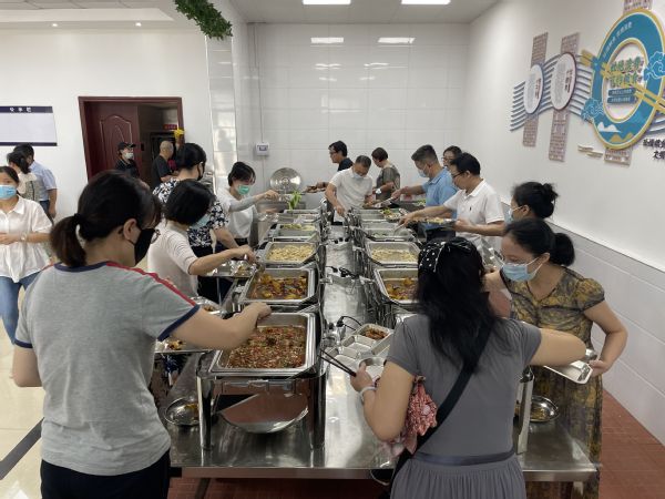 校党委书记贺瑞虎来到食堂,与正在用餐的老师交谈,询问他们第一天的用餐体验。老师们纷纷表示,自助餐模式满足了口味差异与营养需要,还实现了“光盘”。从环境设计到就餐服务都有了极大提高,学校太给力了!