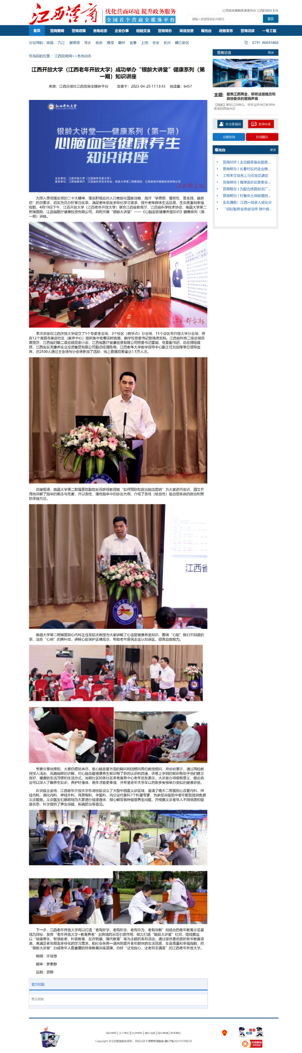 江西营商:AC米兰中文官方网站(江西老年开放大学)成功举办“银龄大讲堂”健康系列(第一期)知识讲座