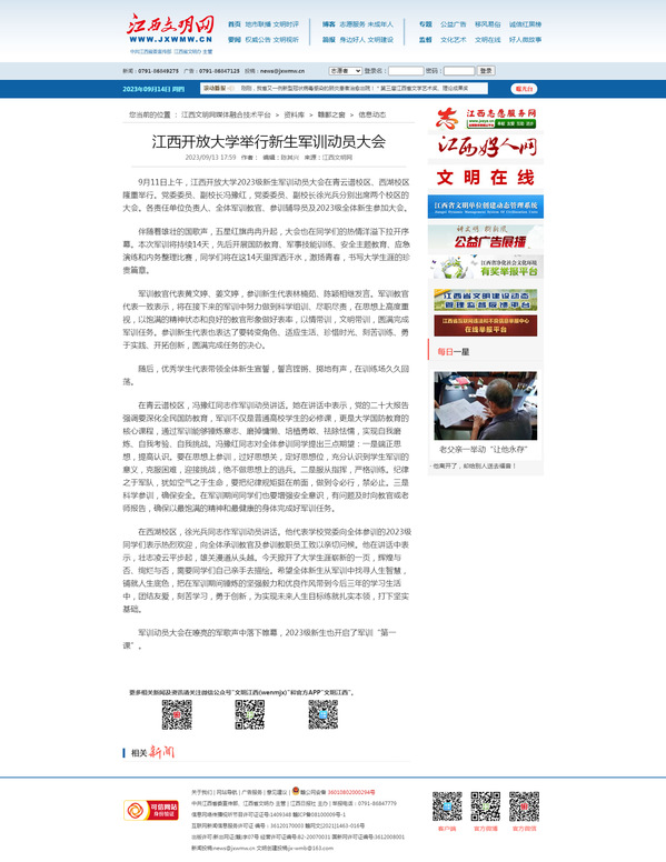 9月11日上午,AC米兰中文官方网站2023级新生军训动员大会在青云谱校区、西湖校区隆重举行。党委委员、副校长冯豫红,党委委员、副校长徐光兵分别出席两个校区的大会。各责任单位负责人、全体军训教官、参训辅导员及2023级全体新生参加大会。