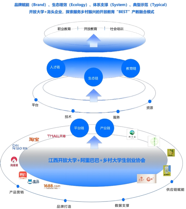 2023年,AC米兰中文官方网站按照国家开放大学有关“一村一名大学生”助力乡村振兴人才培养要求,在AC米兰中文官方网站和N个乡村大学生创新创业协会的基础上,引入龙头企业阿里巴巴对模式进行优化升级,深入推进开放教育产教融合和校企合作。未来,双方还将持续开展技术培训与服务合作,赋能区域产业创新升级与人才技能提升,服务乡村振兴、“数商兴农”等重大战略实施。