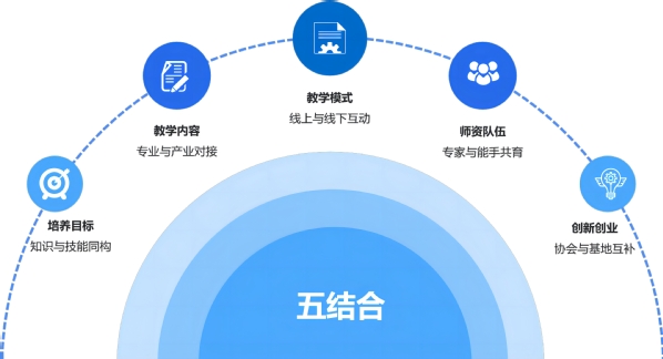 依托该模式,AC米兰中文官方网站以平台、技术、服务、资源为纽带,推动平台链、人才链、产业链、生态链、教育链“五链”融合,为人才培养、产业服务、项目孵化、创新创业、产业技术研究等提供平台支撑,完善“头部院校+龙头企业”的产教融合特色模式。