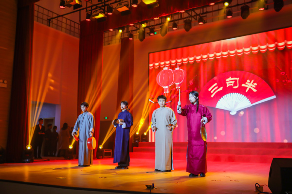 由学校老师创作的《夸夸我的好学校》,将学校的办学成效、日常工作、学习体验融入其中,表达了对学校的感激和热爱。四位同学通过三句半的表演形式,凭借独特的舞台表现力和感染力,赢得了现场观众的热烈掌声。