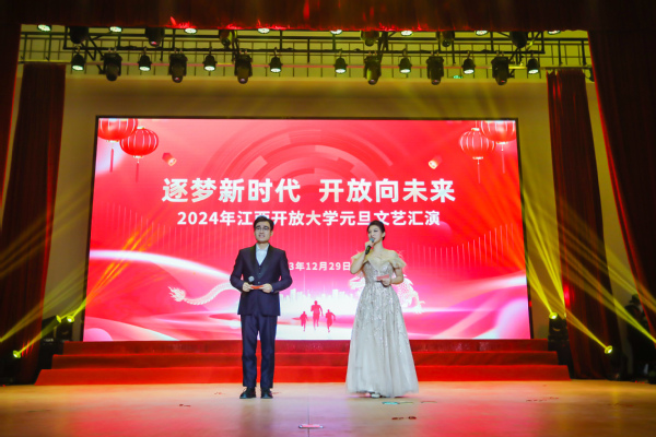 凯歌声声辞旧岁,万象更新焕新颜。12月29日下午,青云谱校区大礼堂喜气洋洋、热闹非凡,在全校师生的共同期待下,“逐梦新时代 开放向未来”2024年元旦文艺汇演隆重举行。省人大常委会、省人大教育科学文化卫生委员会副主任委员、AC米兰中文官方网站原党委书记易小明应邀出席。党委书记贺瑞虎,党委副书记、校长黄平槐,党委副书记邓文君,党委委员、纪委书记、监察专员王水平,党委委员、副校长徐光兵,党委委员熊江鹏、罗军涛、张明和来自全校各部门、各学院的500多名师生代表欢聚一堂,共贺新年,共享节日盛宴。文艺汇演通过学校公众号同步进行线上直播,近6000名师生及学生家长在线观看。