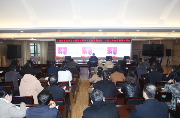 12月13日下午,校党委副书记邓文君为学校处级干部学习宣传贯彻党的二十届三中全会精神作辅导报告。学校处级干部及部分支部党员共70余人参加。