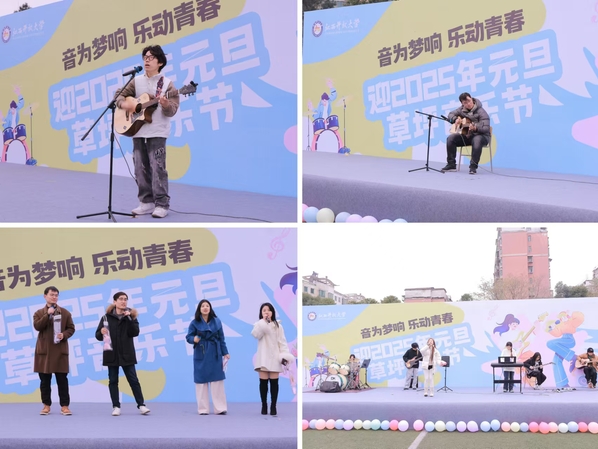 为进一步丰富校园生活,推动校园精神文明建设,营造积极向上的校园文化氛围,12月23日下午,学校在西湖校区开展迎2025年元旦草坪音乐节。活动现场吸引了众多学生踊跃参与,共同谱写属于他们的青春之歌。