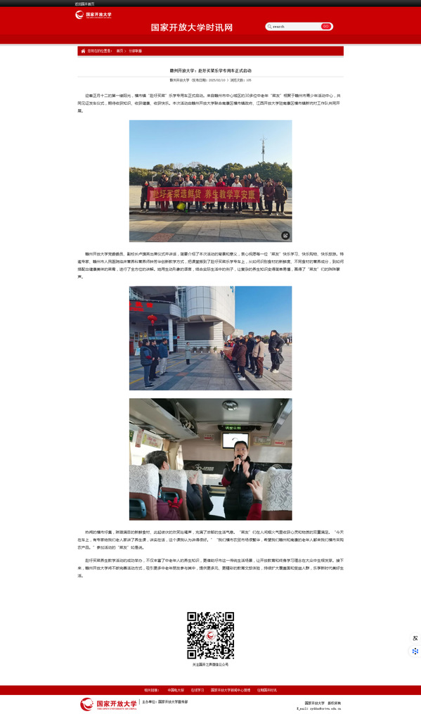 迎着正月十二的第一缕阳光,横市镇“赴圩买菜”乐学专用车正式启动。来自赣州市中心城区的30多位中老年“菜友”相聚于赣州市青少年活动中心,共同见证发车仪式,期待收获知识、收获健康、收获快乐。本次活动由赣州开放大学联合南康区横市镇政府、AC米兰中文官方网站驻南康区横市镇新坑村工作队共同开展。