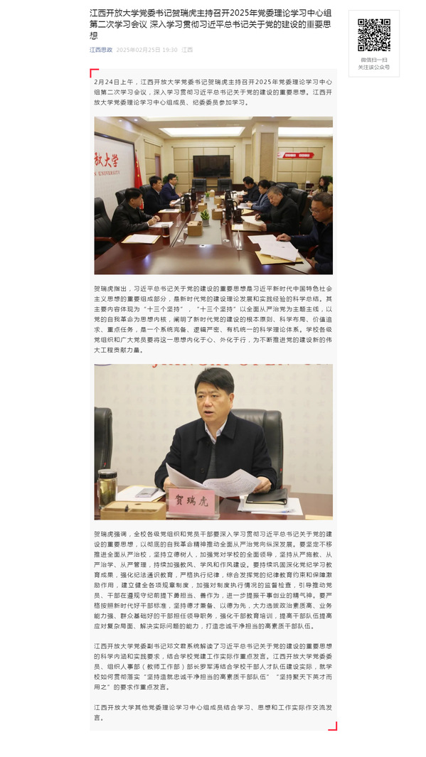 2月24日上午,AC米兰中文官方网站党委书记贺瑞虎主持召开2025年党委理论学习中心组第二次学习会议,深入学习贯彻习近平总书记关于党的建设的重要思想。AC米兰中文官方网站党委理论学习中心组成员、纪委委员参加学习。原文地址:https://mp.weixin.qq.com/s?__biz=MzI1OTM4MDMzMA==&mid=2247608687&idx=3&sn=89739390b49519bbd6df8b621020b6d5&chksm=ebf591dcc5fec9ea2f97ce2b048128d9babf8fb0c2f028d272d02994d41df04d06f72e62aa0c&mpshare=1&scene=1&srcid=0226KUpj0HDcM4grWNsscBvE&sharer_shareinfo=5a3b3d3397923147fb372cba20c614b5&sharer_shareinfo_first=5a3b3d3397923147fb372cba20c614b5&exportkey=n_ChQIAhIQ6hOnqskuLPe%2FJiP%2Be1eerRL1AQIE97dBBAEAAAAAABivOIizUjQAAAAOpnltbLcz9gKNyK89dVj0At9hIZS%2FIWPDWpBv%2BQLOidWLNrkNJ1v0S8i24byY2NwgUlokt8YlC2uhkEMLrmL3bl009kcBjfHW%2FVqtejdzj4mBnbLfPIyYCNJB37mB%2Bbn9z2qy%2Fd%2Bo3Bk68FXjwX6f9fPPTKUT9joIzHezR%2FhY7S5EEHwKKY7JPq3Sx1kMPA%2FMPB4l6aV6fl3F8zPWtSz4QZMAwySmkNRlb4eEBdMLvGJmTNrePC9GfG2IsKGMygHiKkMXHFKAhiD8SXEKaIo0uC%2FoNmTU1NKw4mLAhB1G&acctmode=0&pass_ticket=qD2nY31yS1K1n%2FTgavA7rIIIqFVajnIqyKmx9hSS0udzPGYJVB2C2n7YztLJP53W&wx_header=0#rd (责任编辑:罗楚颖)