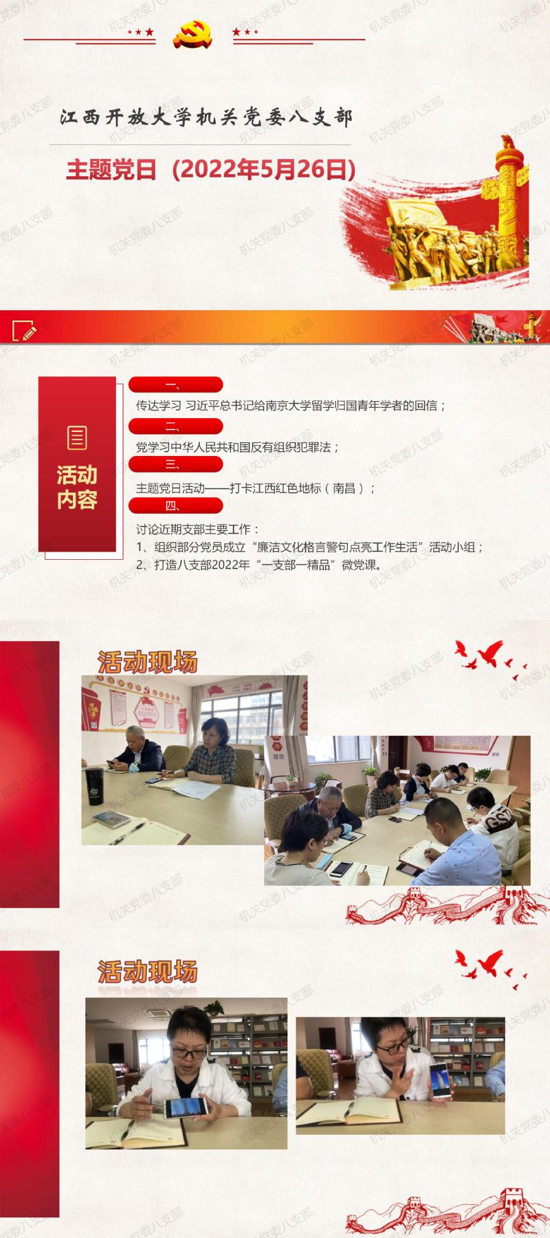 机关党委八支部2022年5月26日开展主题党日活动