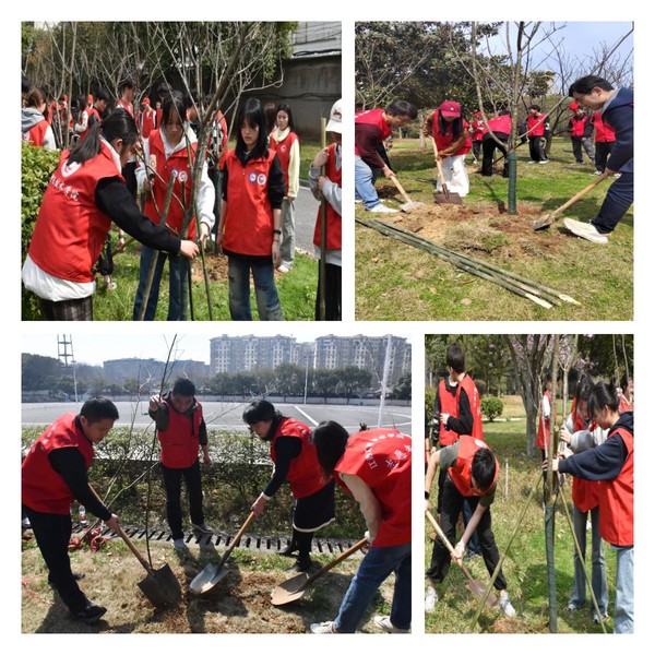 今朝植木行行绿,翌年望林处处春。植树现场,一派繁忙有序、热火朝天的景象。师生们热情高涨、干劲十足,三五个人一组,默契配合,扶正树苗、培实新土,道道工序细致认真、有条不紊,分别在青云谱校区、西湖校区共种下40株枫树、23株樱花树。活动间隙,老师们与同学们亲切交流,了解大家的学习生活情况,希望大家通过植树活动更好地亲近自然,树立健康绿色生活理念,实现德智体美劳全面发展。