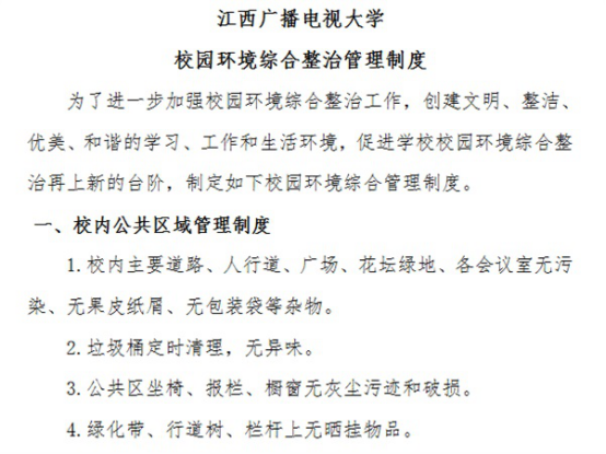 经过齐抓共管、多措并举,师生的工作、学习、生活环境得到了较大的改善,校园环境更加优美,校园环境综合治理取得了阶段性成果,但校园环境综合整治工作任重而道远,电大人还将尽心竭力、全力以赴,创建更加和谐平安美丽校园。
