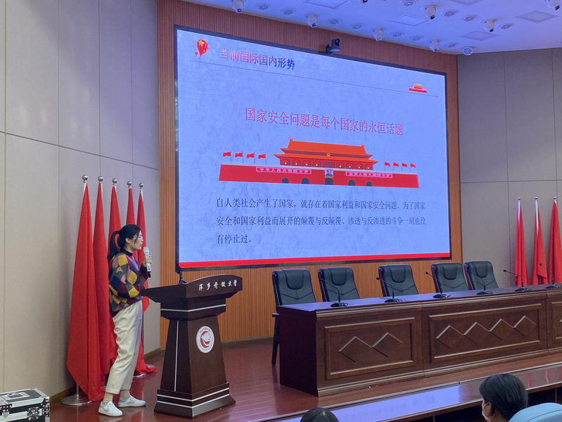 利用各类宣传屏幕展示活动宣传标语循环播放宣传片全力在校园营造全民国家安全教育浓厚氛围同时积极开展国家安全教育日安全专题宣讲组织线上观看“国开大讲堂·国家安全教育公开课”向学生宣传国家安全相关法律知识和开展国家安全教育的重要意义,进一步强化学生法律认知和安全意识