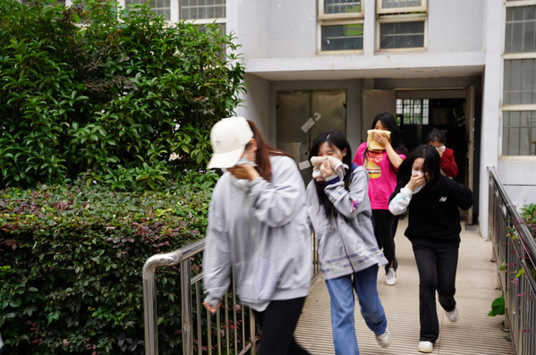 此次演练,主要模拟了“学生宿舍出现火情后,学校进行应急处置”的过程。学校接到通知后立即启动校园消防应急响应,各工作组立即进入应急状态,按照演练预案团结协作、密切配合,各辅导员立即到达指定点位,组织并指导学生快速疏散,带领学生弯着腰,捂住口鼻,沿着指定楼梯口逃离,有序撤离到达安全地带,清点人数。演练中,全体参与人员各司其职、认真负责,各环节快速响应,应急措施到位,有条不紊。