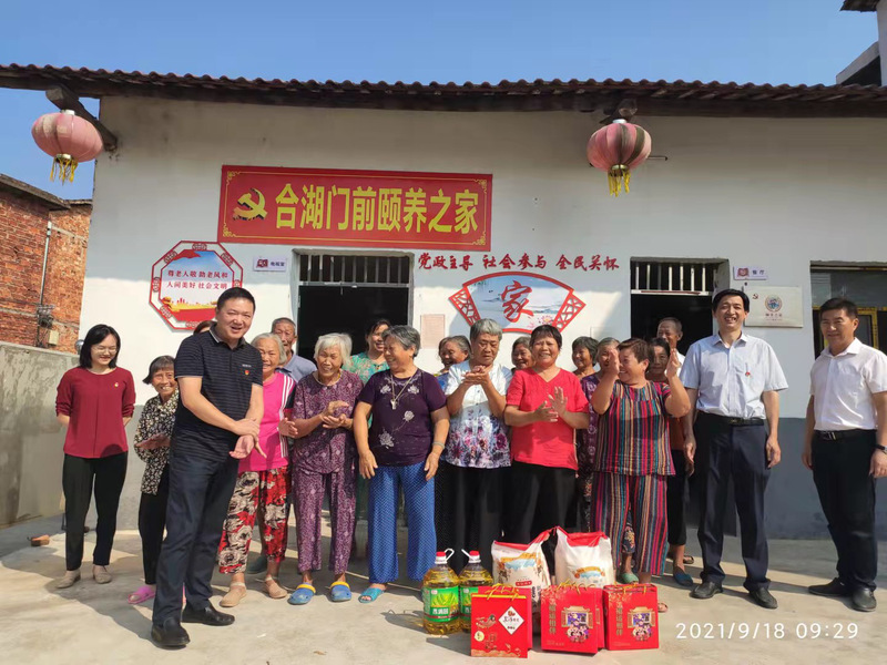 在中秋即将到来之际,9月18日上午,市成人教育中心党委副书记黄绍强带领第一、二党支部志愿者一行来到水西镇合湖村委4个颐养之家开展“党建+颐养之家”志愿者献爱心活动。