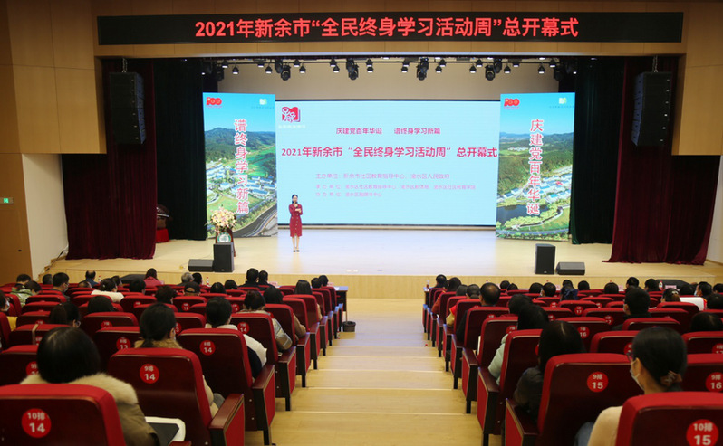 2021年12月14日,由新余市社区教育指导中心、渝水区人民政府主办,渝水区社区教育指导中心、渝水区教育体育局、渝水区社区学院承办的新余市“全民终身学习活动周”总开幕式在渝水区百树外国语北湖学校举行。本届活动周以“庆建党百年华诞,谱终身学习新篇”为主题,紧紧围绕深入学习贯彻党的十九大和十九届四中、五中、六中全会精神,贯彻落实习近平总书记关于教育的重要论述,推动实现“构建服务全民终身学习的教育体系”“建设高质量教育体系”“建设学习型社会”“建成教育强国”等奋斗目标而展开。